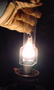 Hier hat Erik einmal mehr eine Rarität aufgetan : Ein H.S. No. 2 (Hugo Schneider, Leipzig) Spiritusglühlicht. Diese Lampe wurde etwa Ende 1920/ Anfang 1930 hergestellt.